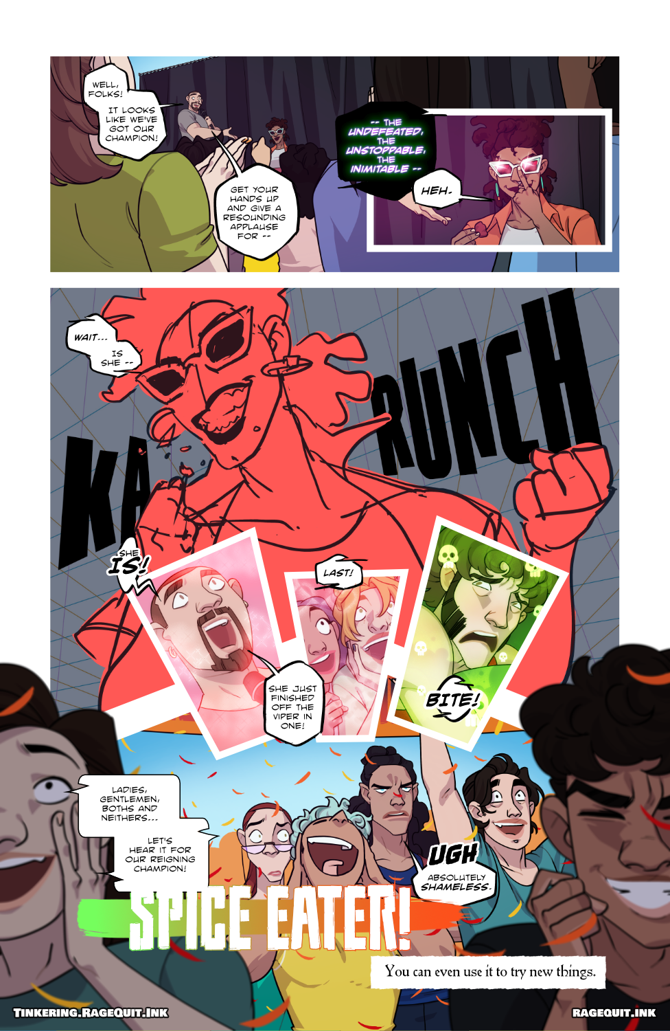 Before doing this project, I didn’t personally have much experience with actually writing for an 18+ crowd so I tended to pull my punches with everything (literally and metaphorically) but the thing with what we’re doing here is really committing to going ham and embracing the camp in what we’re doing which means that needed with every single story.