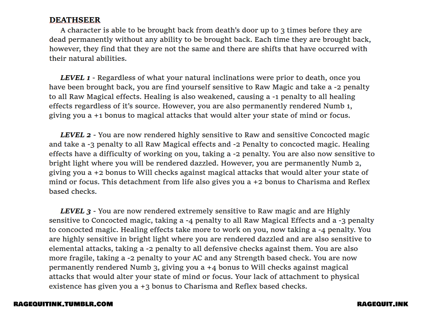So remember how I keep harping about my gripe that part of my burnout from playing TTRPGs is that actions don’t seem to have consequences? Well, with how Magic has completely twisted and warped how a lot of the world worked, I realized that this would likely extend to the idea of dying within Azraeém as well, this is where the Deathseer Mechanic came in.