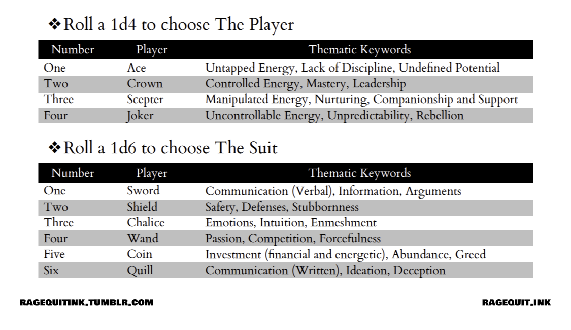 The first one that we started developing is called THE FATEFUL FOUR which is one of the standard ways that the people of Azraeém take part in fortune telling and will only require rolling a 1d4 and 1d6 to play in game.