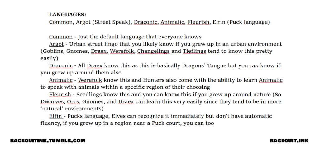 With everything developed based around flavor more than anything. I mean at this point with how much the world of Fantasy has been developed, we only really have the option to put our spin on things unless we want to spend years upon years developing everything.