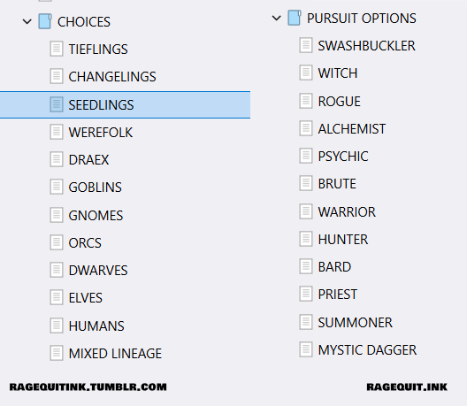 I’ll be honest: I consider myself a little bit trolly and wanted to have the “High” Lineage be something that reflected that especially since the story is supposed to be pretty campy and the game itself is written like a play (more on that later).